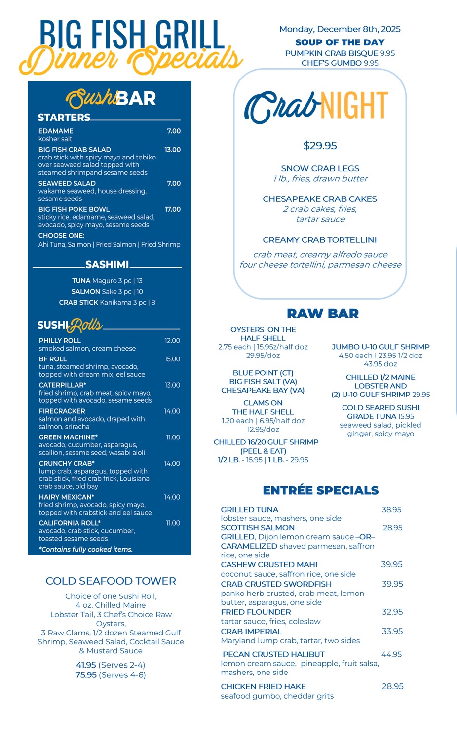 4pm-9pmOff-Season SpecialsMonday, December 8th, 2025