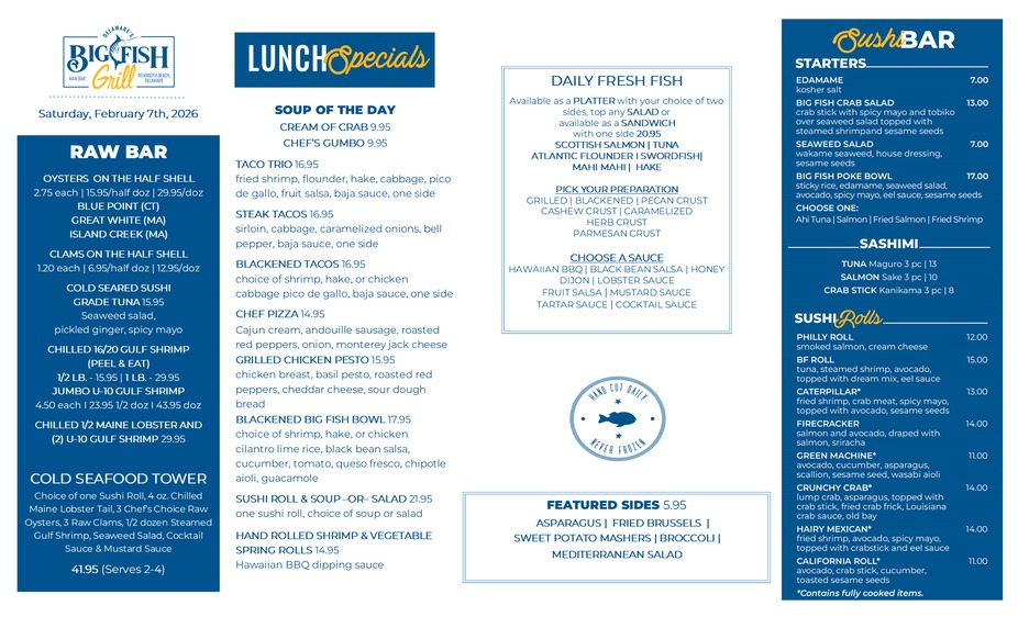 12pm-4pmLunch SpecialsSaturday, February 7th, 2026