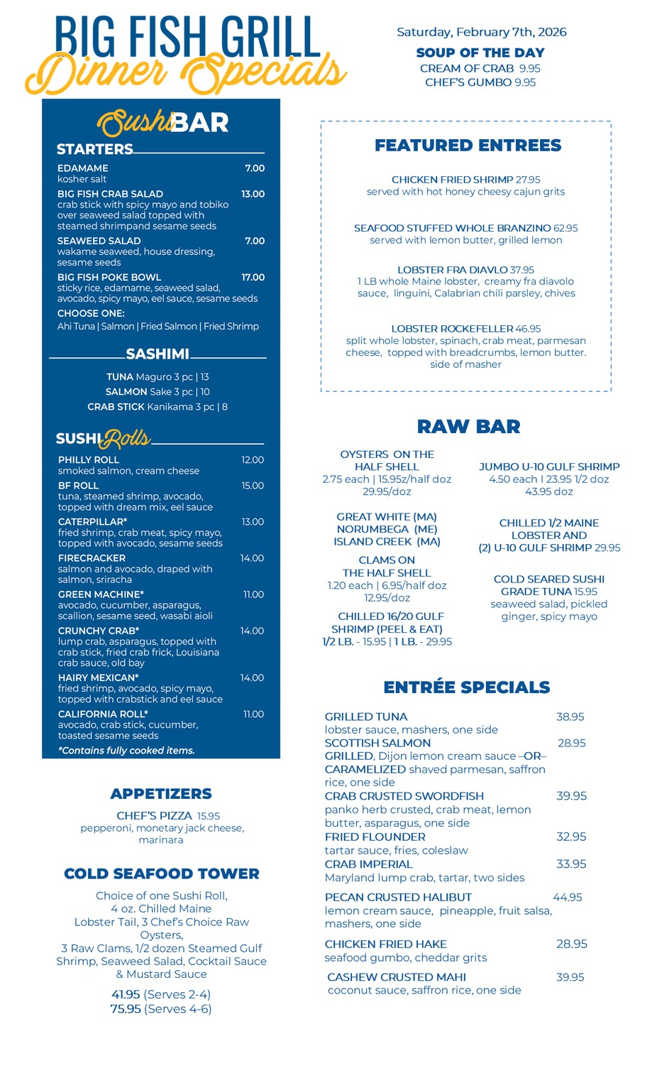 4pm-9pmDinner SpecialsSaturday, February 7th, 2026