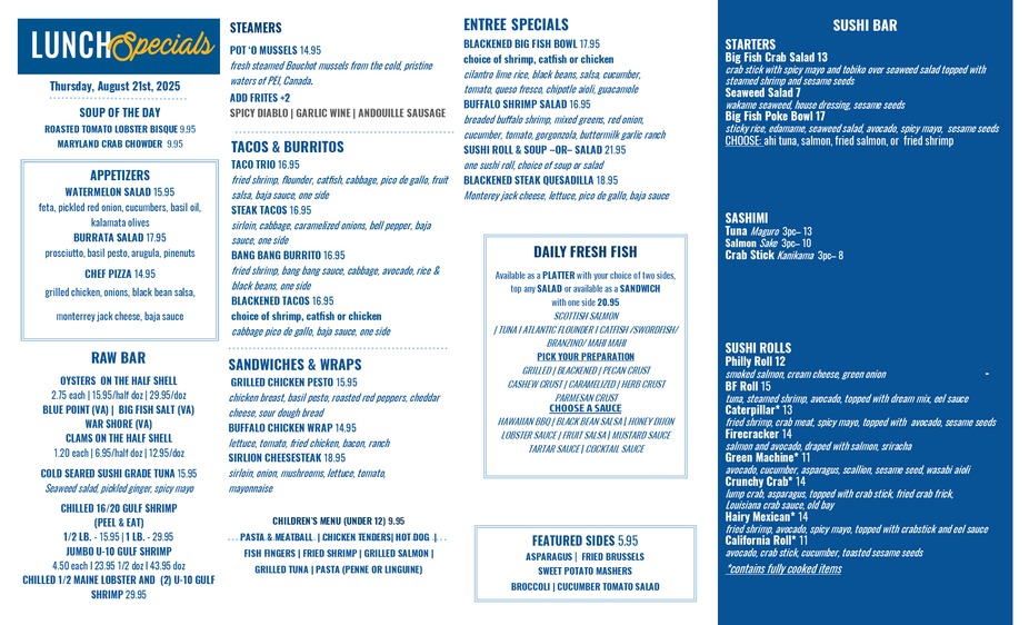 4pm-9pmOff-Season SpecialsWednesday, January 21st, 2026