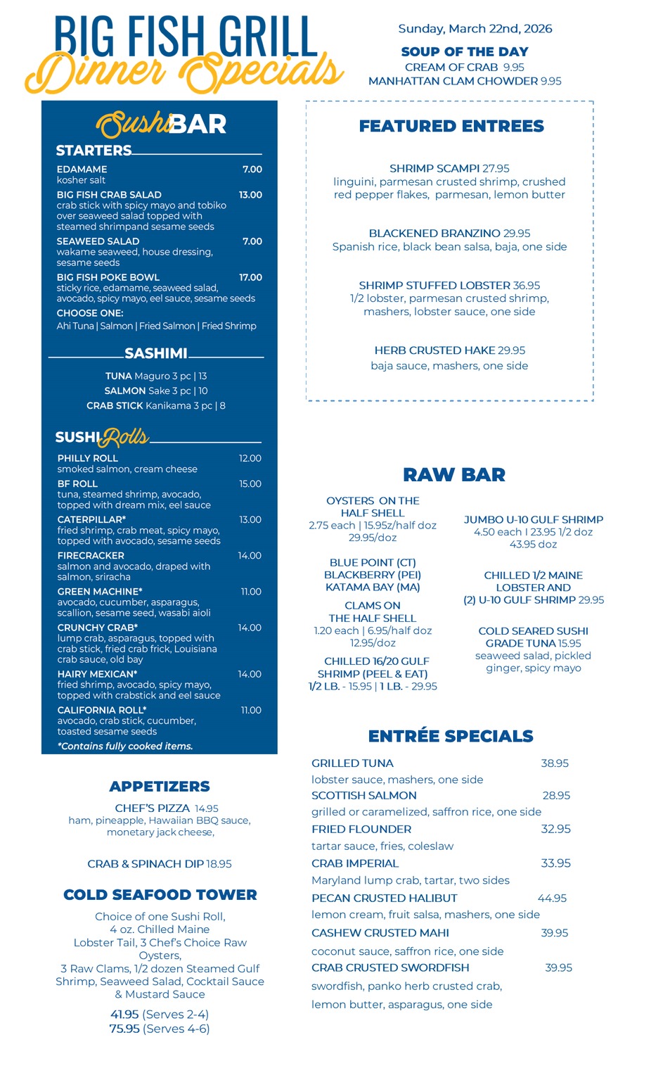 10am-7pmBig Fish Grill - Easter BuffetSunday, April 5th, 2026