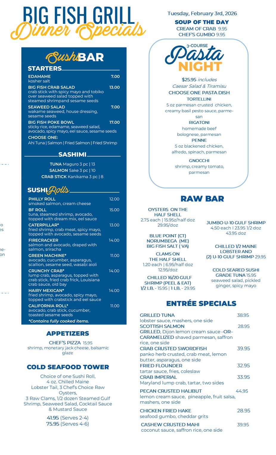 4pm-9pmOff-Season SpecialsTuesday, February 3rd, 2026